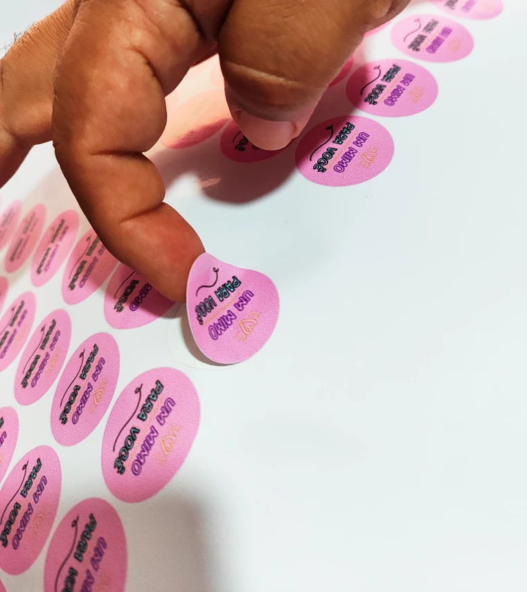 Adesivo com Impressão Ecosolvente e Meio Corte pronta para destacar e colar