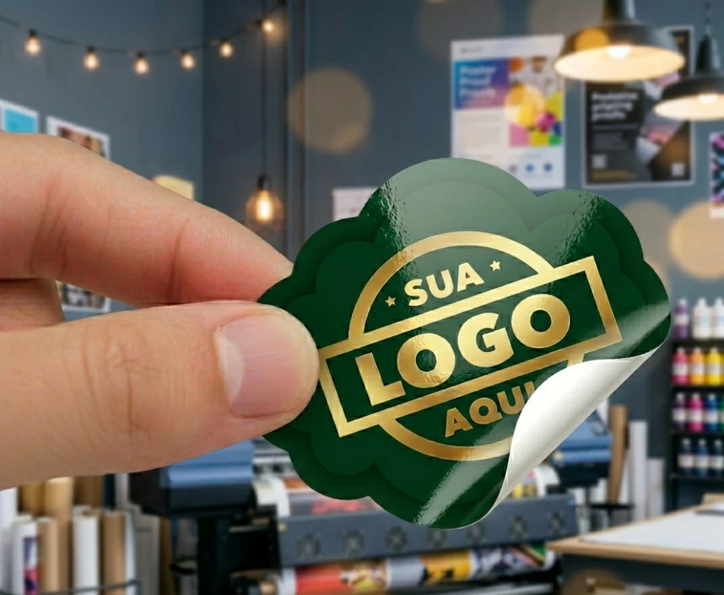 Adesivo com Impressão Ecosolvente e Meio Corte pronta para destacar e colar