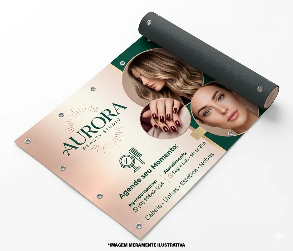 Atenção! tamanho máximo de 150cm, caso o tamanho seja maior, haverá uma emenda, local da aplicação da emenda fica a cargo da gráfica.