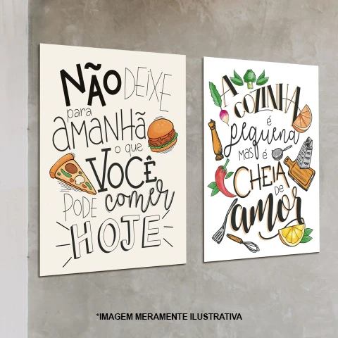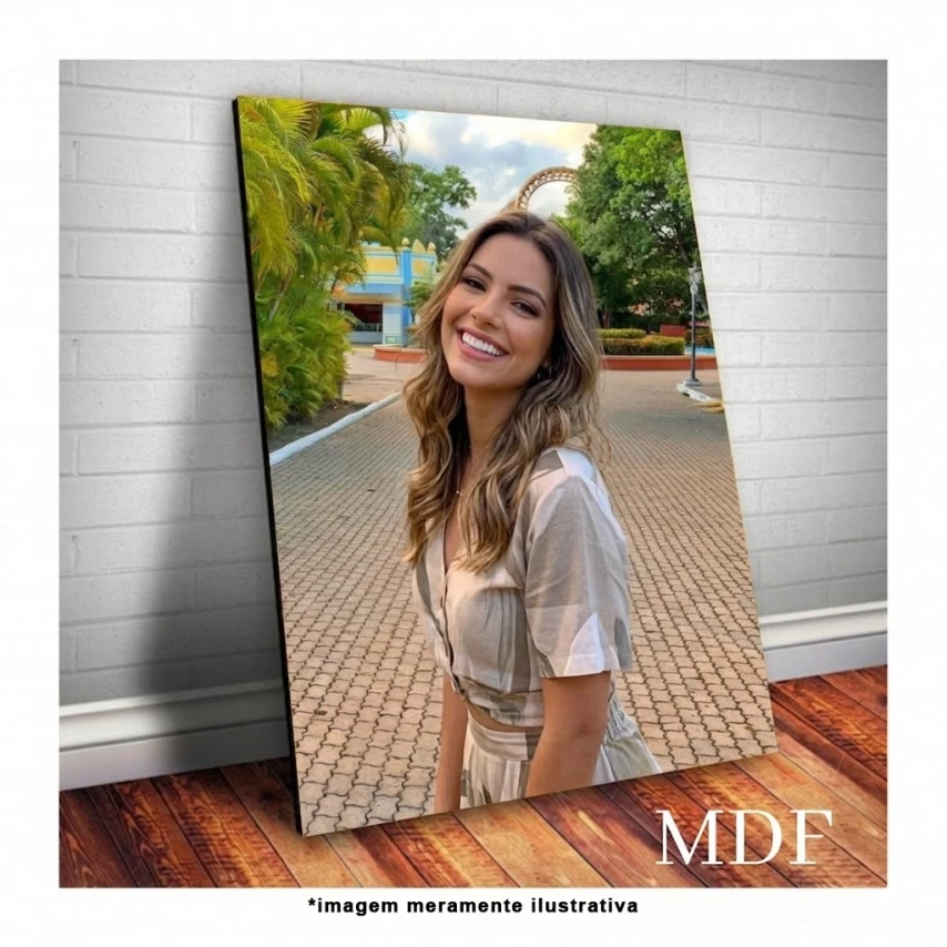 Quadro com impressão em adesivo vinil brilho ou fosco de alta qualidade, sobre base de MDF 3 mm e fita dupla face na traseira para fixação.